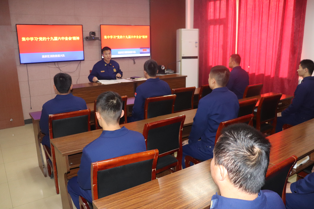 本刊讯 11月23日上午,高新区消防救援大队召开专题学习会,集中学习“党的十九届六中全会”精神。深刻认识党的百年奋斗光辉历程、辉煌成就,坚持党的绝对领导、坚决做到“两个维护”。 学习过程中,政治教导员陈明军,首先带领大队指战员认真学习了党的十九届六中全会精神,深刻了解党的历史,领悟党的精神,坚定理想信念,牢记初心使命,强调此次全会深刻总结了中国共产党百年来带领人民从胜利走向胜利的伟大历程、巨大成就,并结合党史学习教育坚持全面学、系统学、融会贯通学,从中领会党的百年奋斗的重大成就和历史经验问题,坚持“先学一步、深学一步”的要求,确保学深悟透、入脑入心。 随后政治教导员陈明军提出三个要求:一、充分认识隆重庆祝中国共产党成立100周年、开展党史学习教育、筹备党的十九届六中全会的重要意义,要从中汲取强大的精神力量,进一步激励全体指战员爱党爱国爱社会主义,在新征程上奋力前行,不断夺取新的更大胜利。二、充分认识统筹“两个大局”、统筹发展和安全取得的重大胜利,贯彻总体国家安全观,强化底线思维和风险意识,推动大队各项工作行稳致远。三、充分认识加强党的全面领导和党的建设取得的重大进展,以改革创新精神在加强党的全面领导和党的建设方面率先示范。 下一步,高新大队将开展多层面多形式的学习活动,确保学深悟透、融会贯通,以全会精神武装头脑、指导工作、推动工作,切实增强责任感使命感,要保民平安、为民造福,努力交出学习贯彻全会精神的合格答卷。(许 铮 刘 源) |